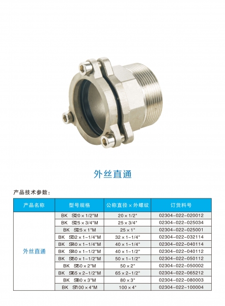 | 外絲直通 | TS20×1/2"M | 03304-022-020012-01 | 304 |