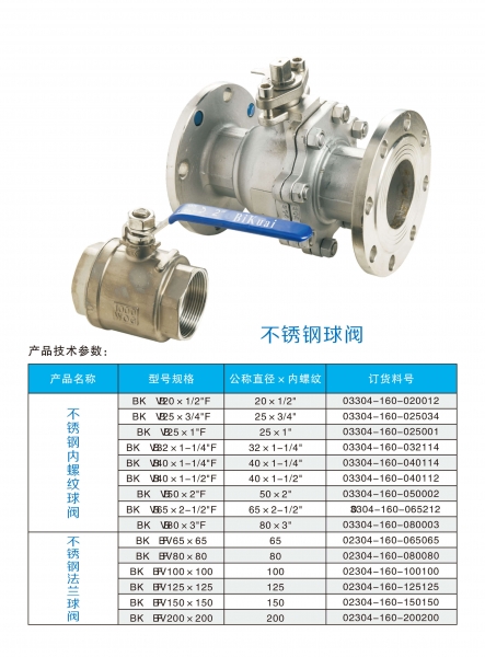 | 不銹鋼全通徑內(nèi)螺紋球閥 | BV 1/2"F | 03304-160-020012-01 | 304 |